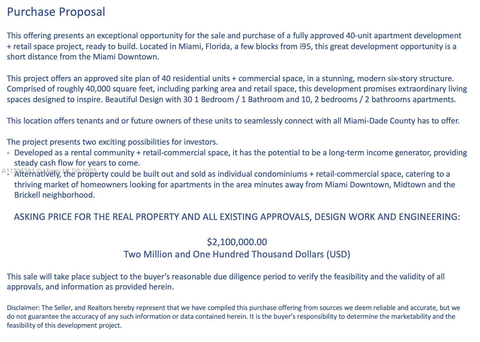 This project offers an approved site plan of 40 residential units + commercial space, in a stunning, modern six-story structure. Comprised of roughly 40,000 square feet, including parking area and retail space, this development promises extraordinary living spaces designed to inspire. Beautiful Design with 30 1 Bedroom / 1 Bathroom and 10, 2 bedrooms / 2 bathrooms apartments.