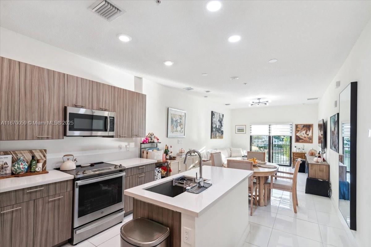 Why settle for ordinary when you can have lakefront living in Downtown Doral? This unique 2-bedroom, 2-bath NEXTGEN model is basically two homes in one: a cozy studio with a kitchen and full bath, plus a separate 1-bedroom unit featuring its own kitchen, washer/dryer, and a balcony with stunning lake views that scream, “I made it!”